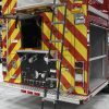 Store ladder parallel to apparatus body. Release the locking handle and pull the ladder out to a comfortable climbing angle when needed. The ladder automatically latches and will not retract until the scissor lock is raised.